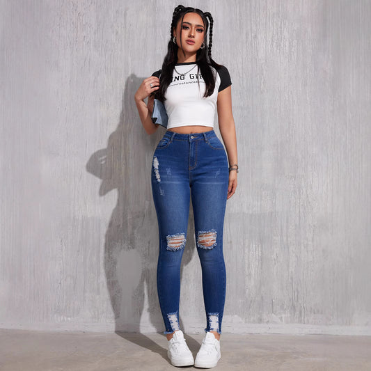 Damen Ripped Denim-Hose mit fransigen Saumdetails und hohem Bund Stalluxe