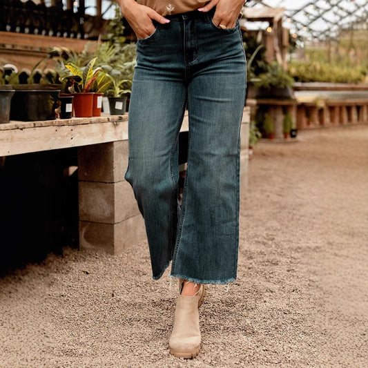 Damen Weit geschnittene Denim-Hose mit trendy abgeschnittenem Saum Stalluxe