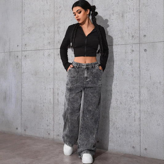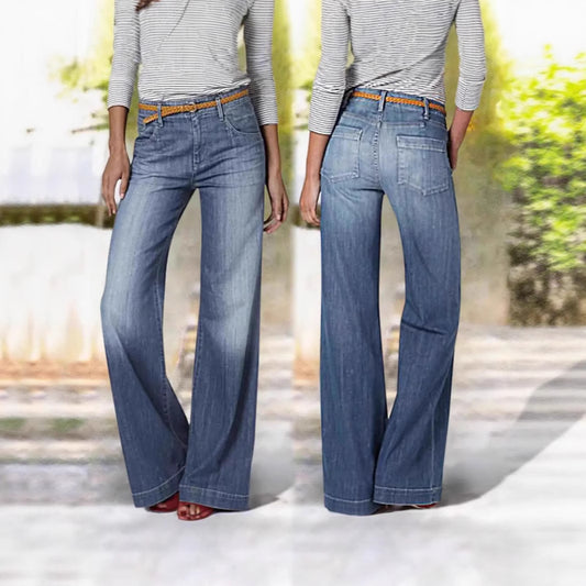 Damen Weit geschnittene Denim-Hose mit hohem Bund und modernem Design Stalluxe