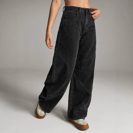 Damen Weit geschnittene Denim-Hose mit einzigartigen Nähten Stalluxe