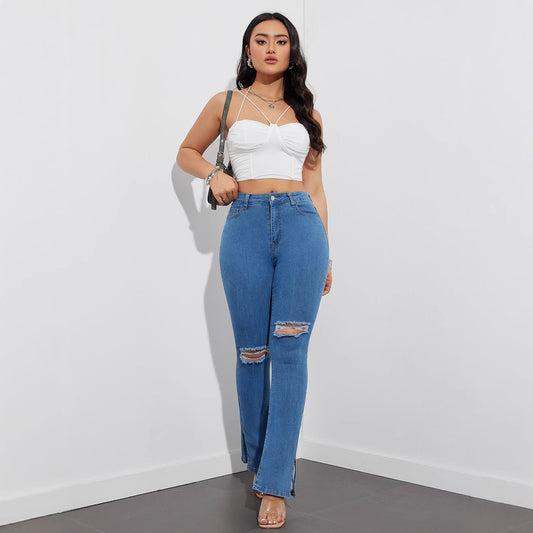Damen Flared Jeans mit hohem Bund und seitlichen Schlitzen Stalluxe
