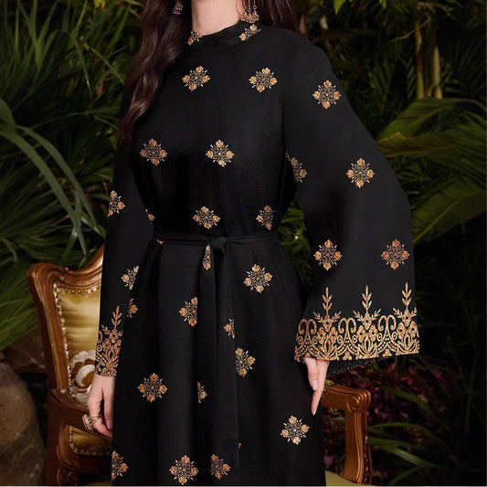 Damen Kaftan-Kleid mit eleganten Goldakzenten und langen Ärmeln Stalluxe