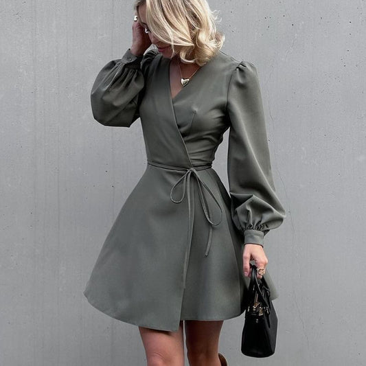 Damen Wickelkleid mit elegantem V-Ausschnitt und langen Ärmeln Stalluxe