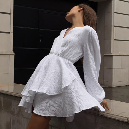 Damen Minikleid mit schwingendem Rock und Puffärmeln Stalluxe