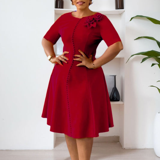 Damen A-Linien Kleid mit eleganten Knopfdetails und schwingendem Rock Stalluxe