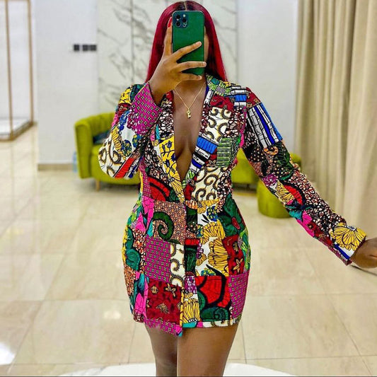 Damen Blazer-Kleid mit buntem Patchwork-Design und elegantem Revers Stalluxe