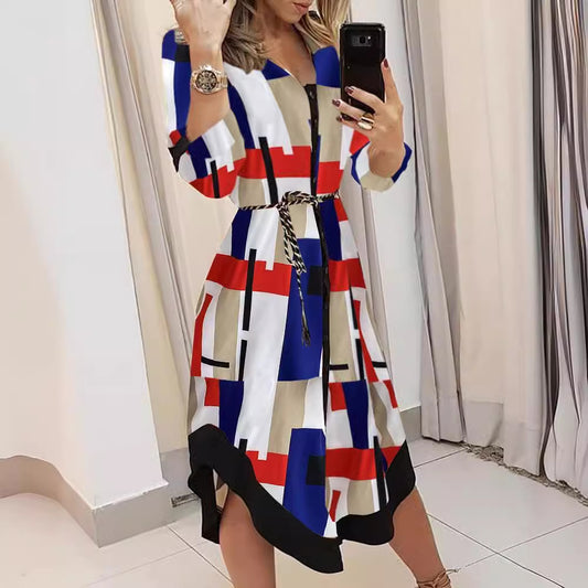 Damen Maxikleid mit Tiermuster und elegantem Taillengürtel Stalluxe