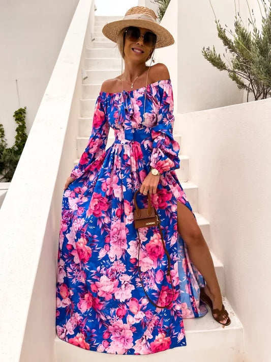 Damen Maxikleid mit schulterfreiem Schnitt und floralem Design Stalluxe