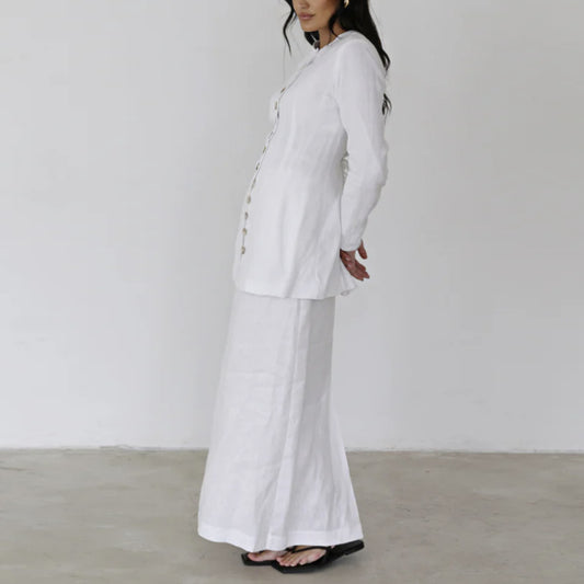 Damen Elegantes Maxikleid mit kontrastierendem Kragen und Knopfdetails Stalluxe