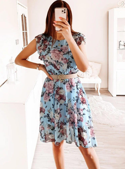 Damen Sommerliches Blumenkleid mit elegantem Rundhalsausschnitt und schwingendem Rock Stalluxe