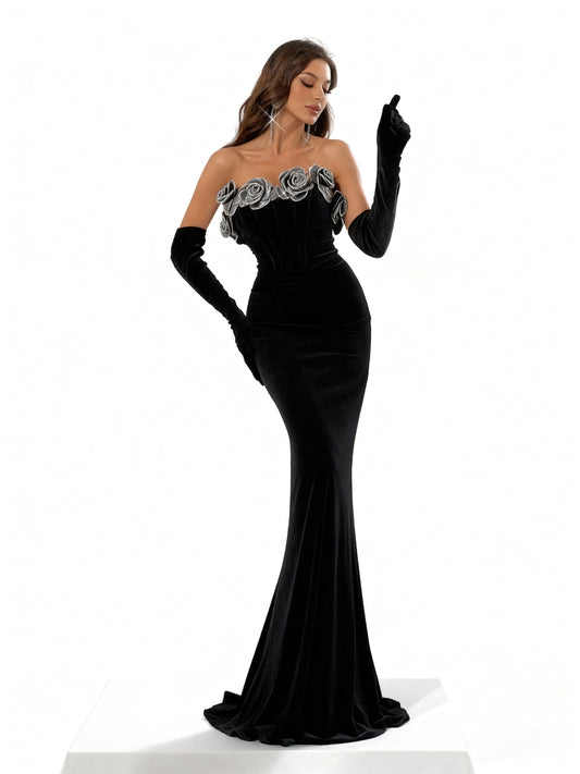 Stalluxe | Blumenverziertes Trägerloses Kleid mit Fischschwanz-Saum
