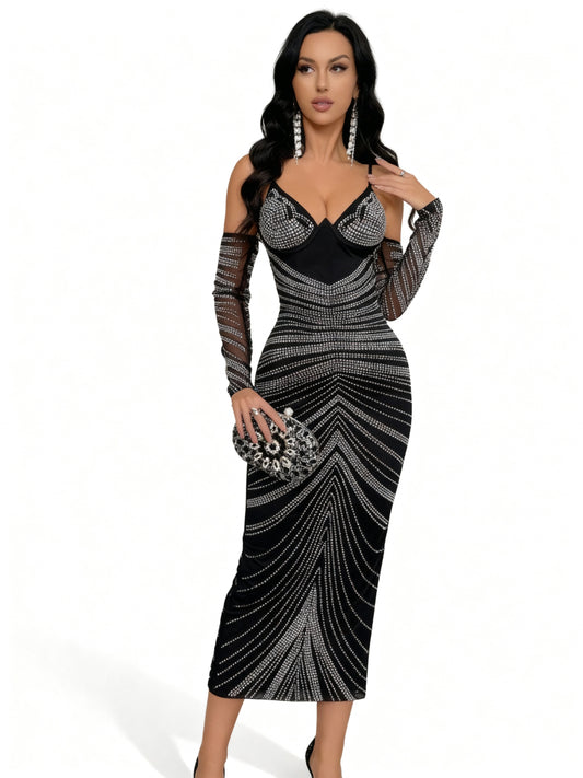 Stalluxe | Zurückhaltendes Schwarzes Abendkleid mit Strass und Langarm