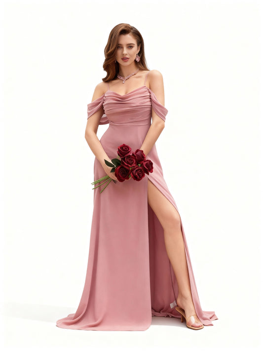 Stalluxe | Elegantes Brautjungfernkleid mit Spaghettiträgern, offenem Rücken und Beinschlitz