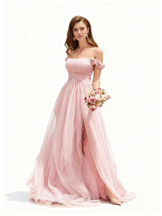 Stalluxe | Romantisches rosa Abendkleid mit Falten, trägerlosem Design und Schlitz