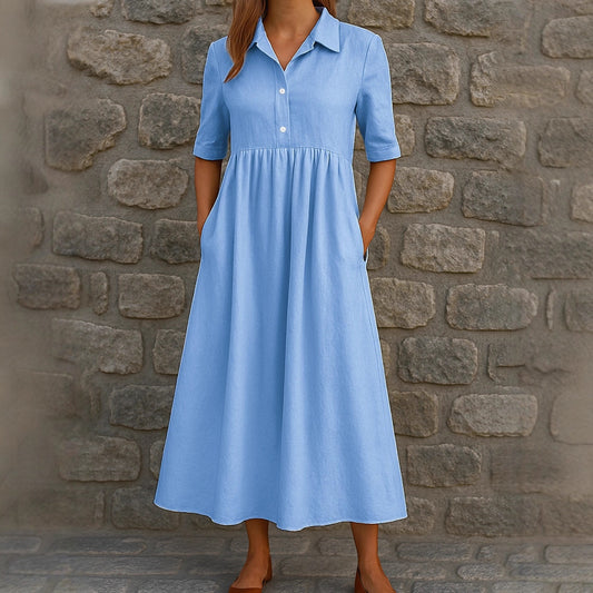 Damen Leinenhemdkleid im lässigen Stil mit langen Ärmeln Stalluxe