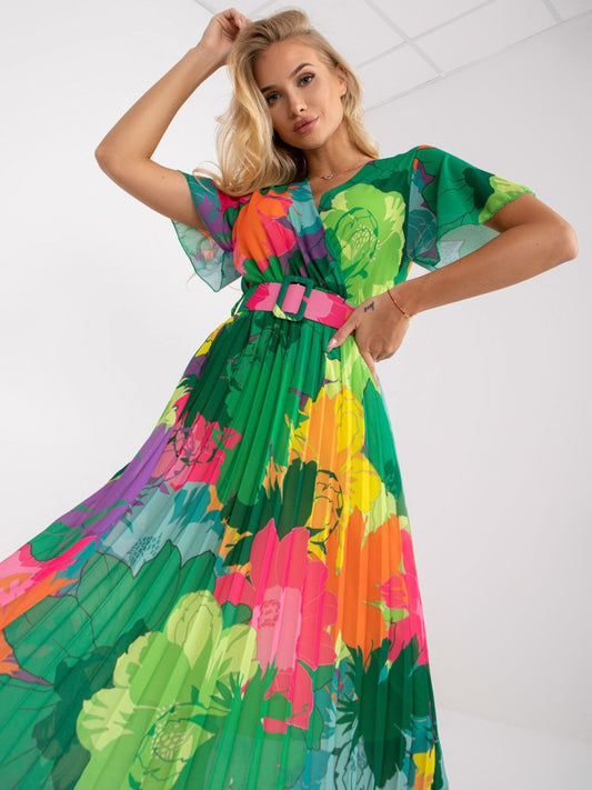 Damen elegantes Maxikleid mit floralen Mustern und taillierbarem Gürtel Stalluxe