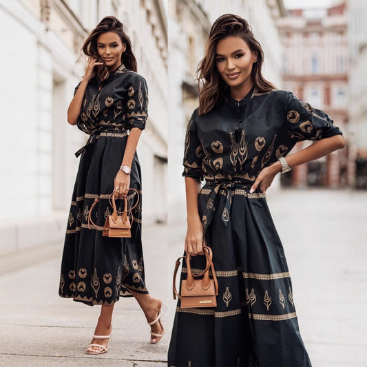 Damen Elegantes Maxikleid mit kunstvollen Musterdetails und Taillengürtel Stalluxe