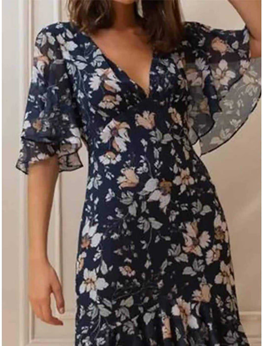 Damen Maxikleid mit Volant und V-Ausschnitt Stalluxe