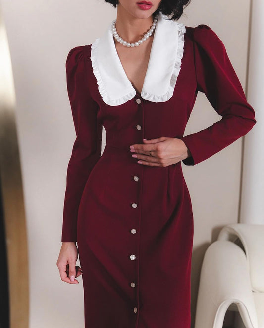 Damen Elegantes Maxikleid mit kontrastierendem Kragen und Knopfdetails Stalluxe