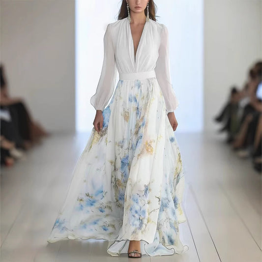 Damen Elegantes Maxikleid mit floralem Print und tiefem V-Ausschnitt Stalluxe
