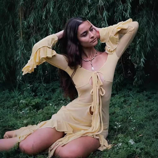 Damen Elegantes Maxikleid mit Rüschendetails und v-förmigem Ausschnitt Stalluxe