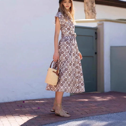 Damen Maxikleid mit elegantem Blütenmuster und raffiniertem Taillenzug Stalluxe