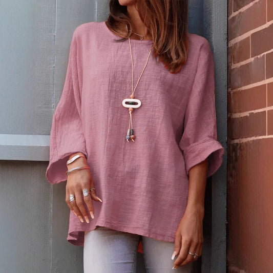Damen Fließendes Leinenoberteil mit weiten Ärmeln Stalluxe