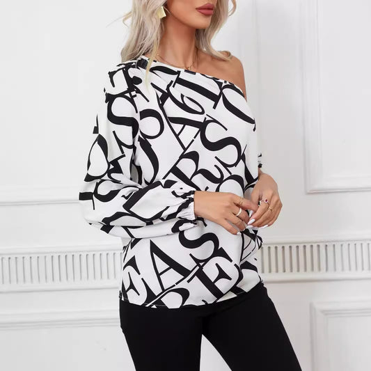 Damen Modisches asymmetrisches Oberteil mit auffälligem Schriftzug Stalluxe