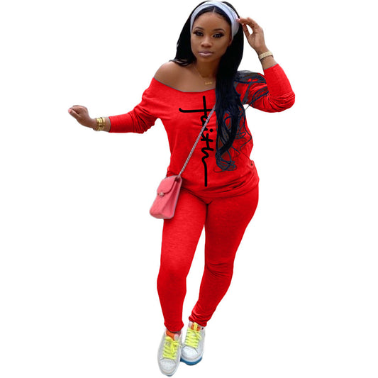 Damen Bequemes Off-Shoulder Jumpsuit mit modischem Print und elastischem Bund Stalluxe