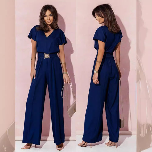 Damen Modischer Overall mit weitem Bein und Taillengürtel Stalluxe
