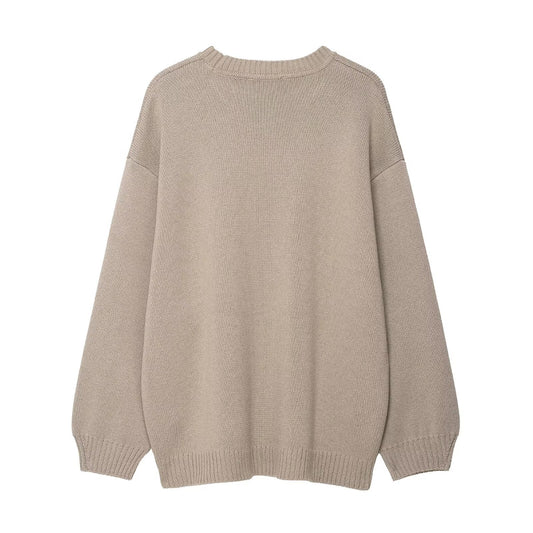 Damen lockerer Strickpullover mit überschnittenen Schultern und breitem Bündchen Stalluxe