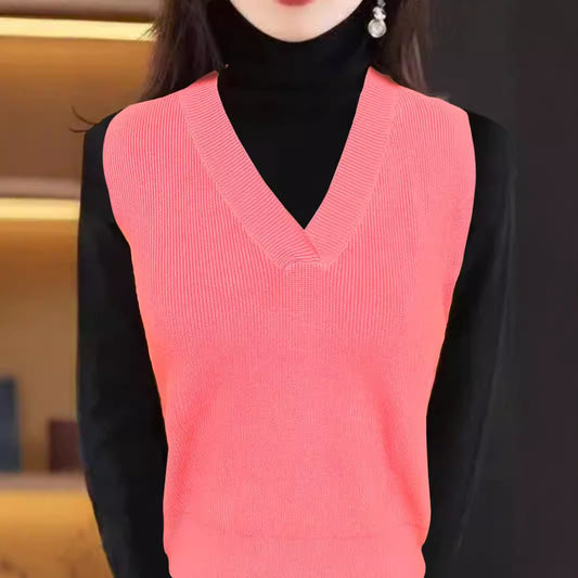 Damen Strickpullunder mit V-Ausschnitt und feiner Rippstruktur Stalluxe