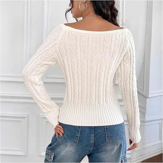 Damen Strickpullover mit tiefem Rundhalsausschnitt und strukturiertem Zopfmuster Stalluxe