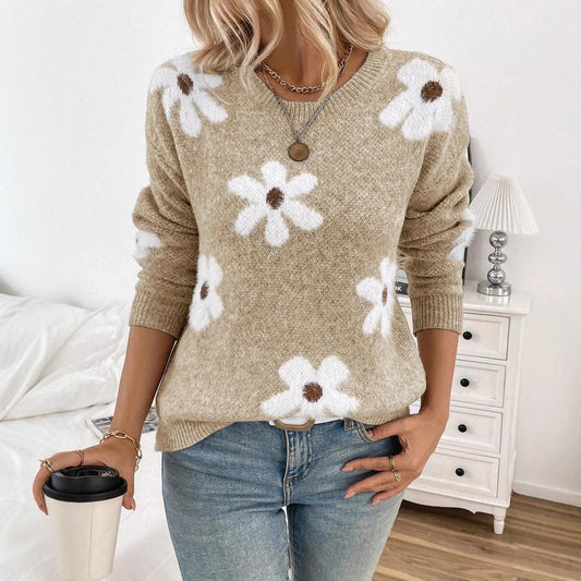 Damen Strickpullover mit floralen Stickdetails und lässigem Schnitt Stalluxe