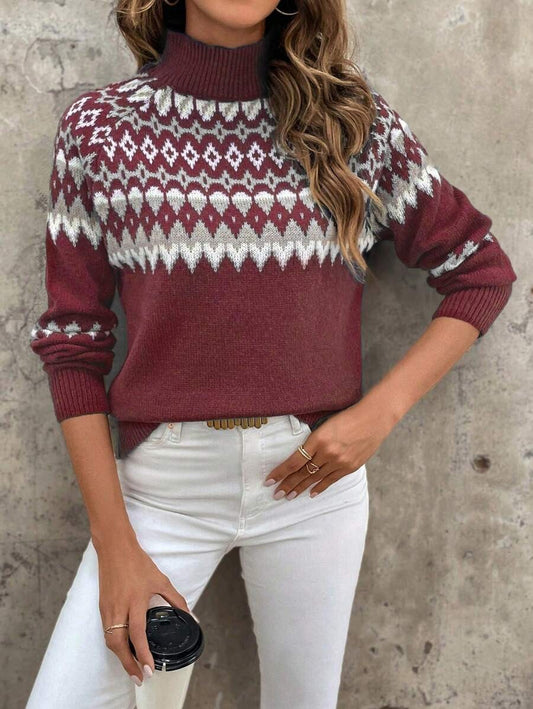Damen Strickpullover mit hohem Kragen und winterlichem Muster Stalluxe