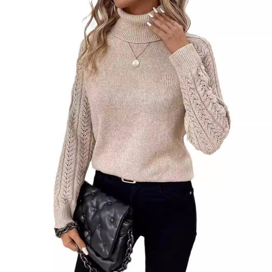 Damen Strickpullover mit hohem Kragen und filigranem Lochmuster Stalluxe