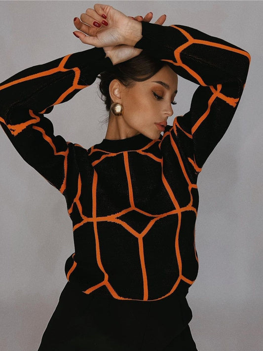 Damen Modischer Strickpullover mit auffälligem geometrischem Design Stalluxe
