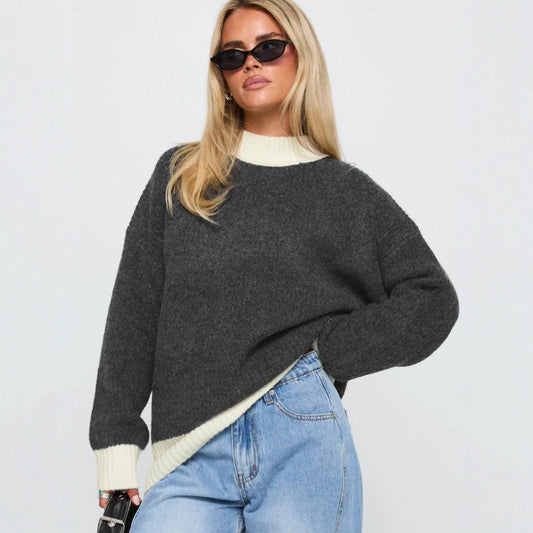 Damen Oversized Strickpullover mit hochabschließendem Kragen Stalluxe