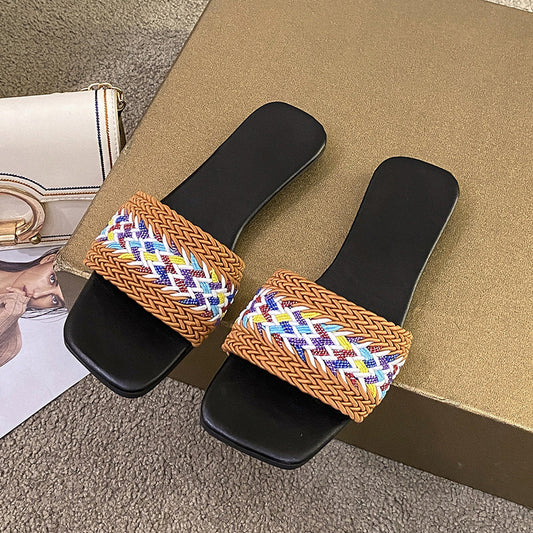 Damen modische Riemchen-Pantoletten mit geflochtenem Design und komfortablem Fußbett Stalluxe