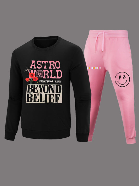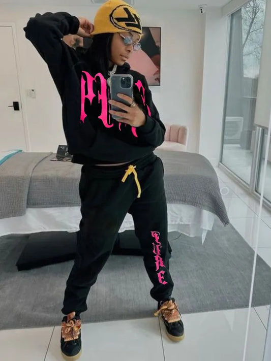 Damen lässiges Hoodie und Jogginghose Set mit einzigartigem Schriftzug und kreativen Motiven Stalluxe