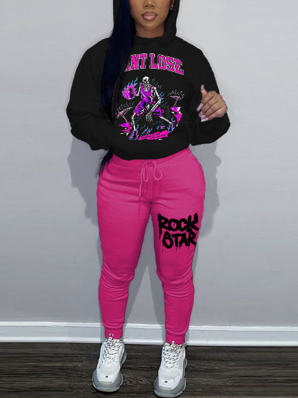Damen Hoodie und Jogginghose Set mit fesselndem Grafikdesign Stalluxe