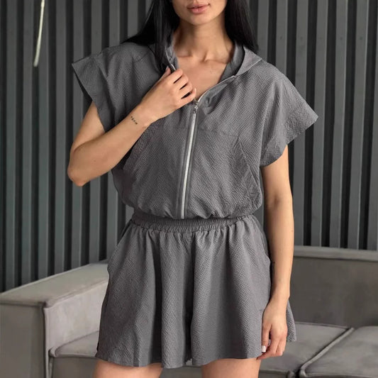 Damen sportliches Zweiteiler-Set mit cropped Jacke und Shorts Stalluxe