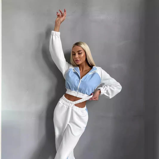 Damen sportlicher Lounge-Anzug mit cropped Oberteil und elastischen Hosen Stalluxe