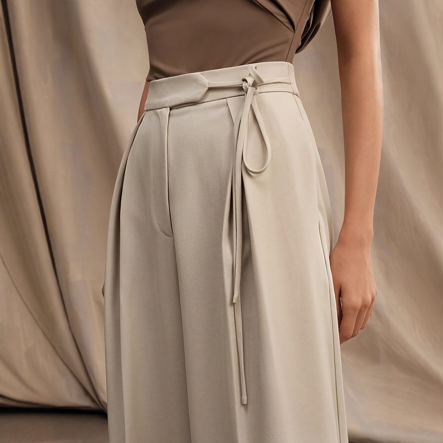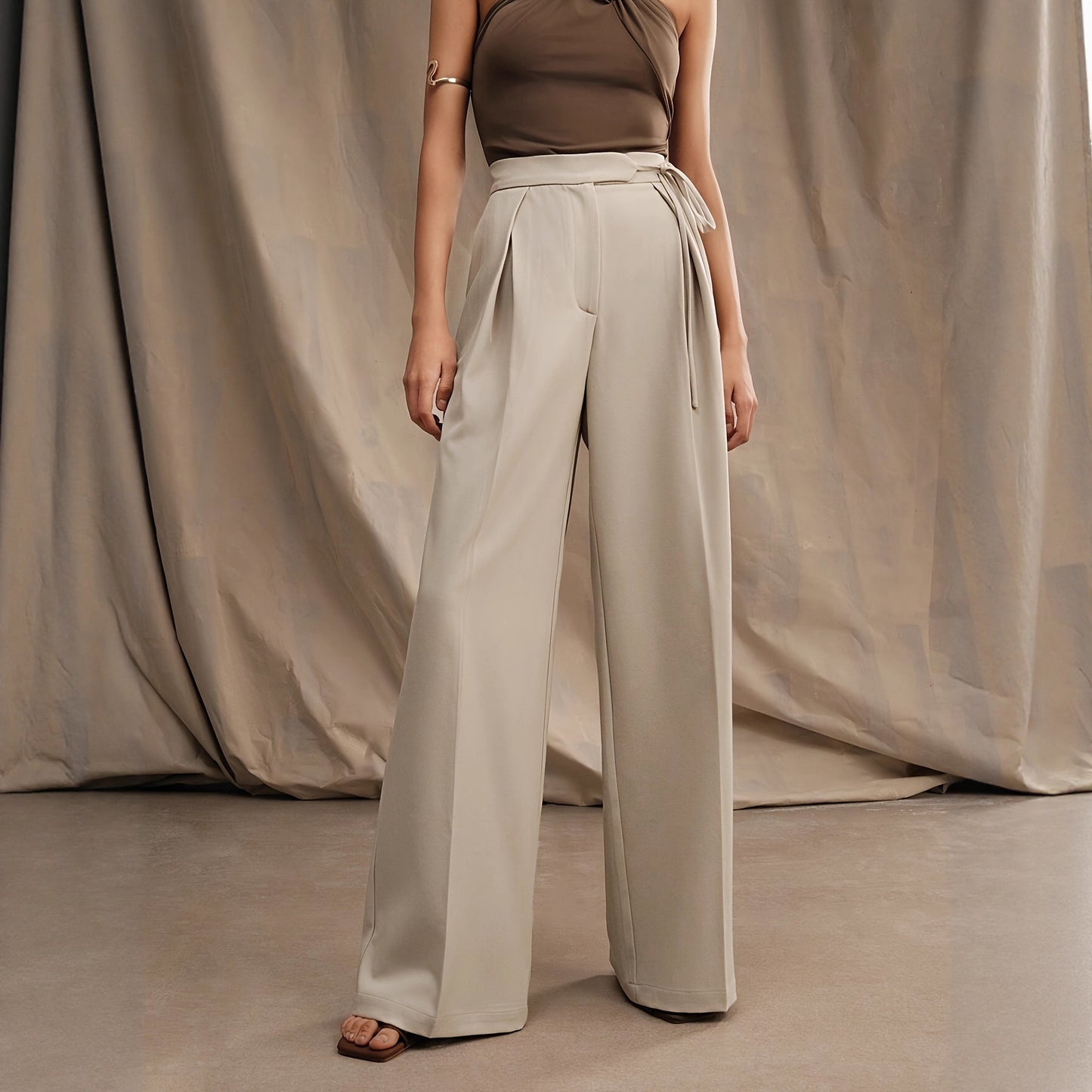 Damen elegante weite Hose mit Taillengürtel und seitlichen Falten Stalluxe