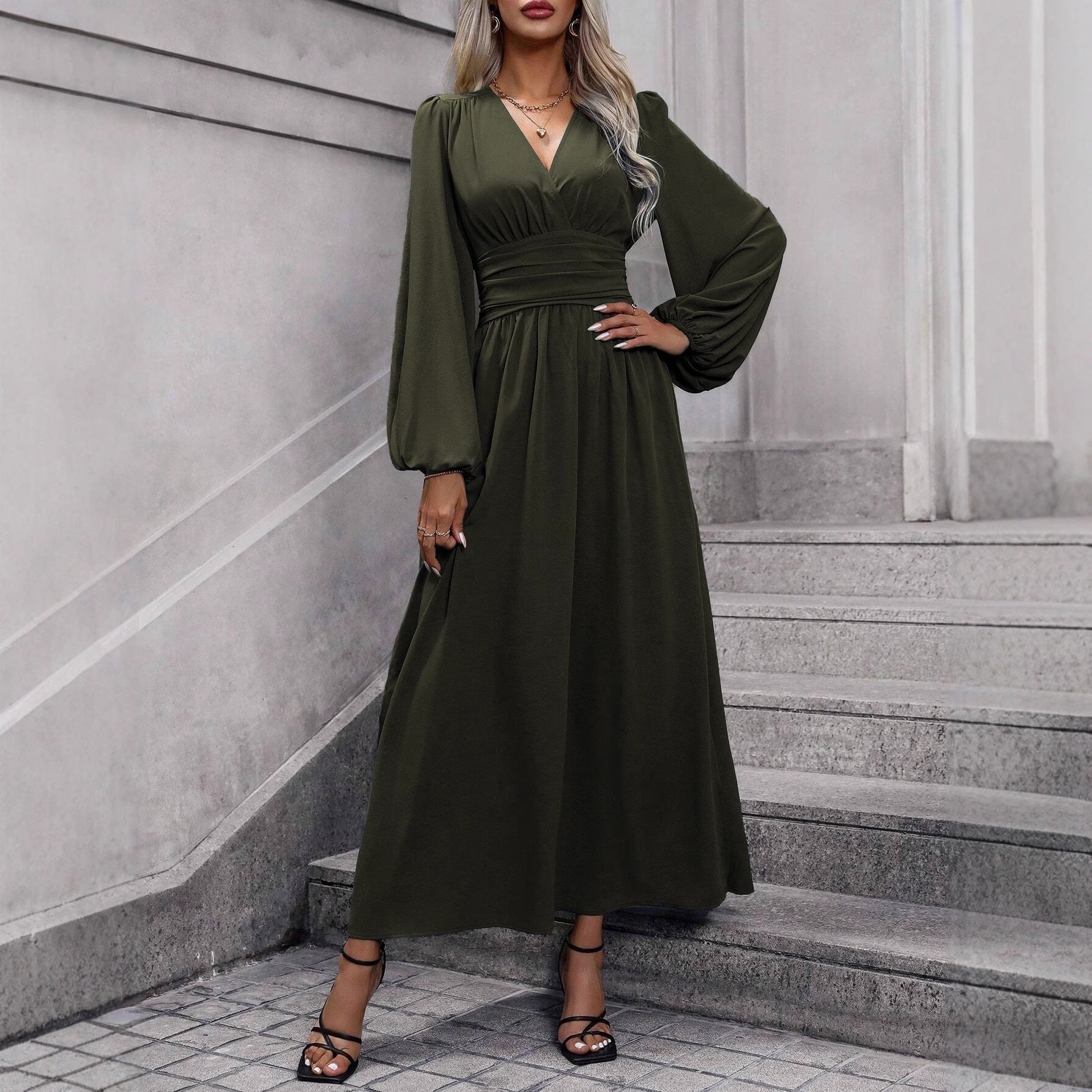 Entdecken Sie unser Damen elegantes Maxikleid, das sowohl Stil als auch Komfort vereint. Dieses Kleid besticht durch einen tiefen V-Ausschnitt, der die Silhouette wunderschön umrahmt. Die voluminösen Puffärmel verleihen dem Kleid einen romantischen Touch, während der schicke Taillenbereich eine schmeichelhafte Passform sichert.