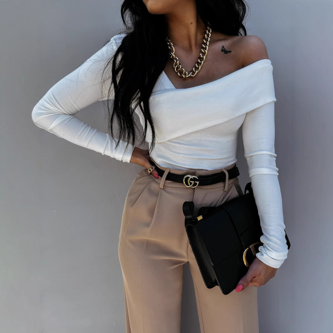 Damen Elegantes Oberteil mit asymmetrischem Schnitt und langen Ärmeln Stalluxe