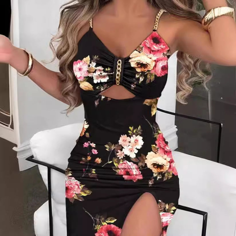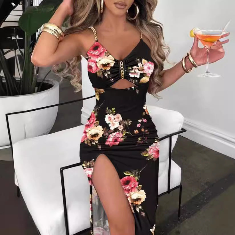 Damen figurbetontes Maxikleid mit floralem Muster und Cut-Out-Detail Stalluxe
