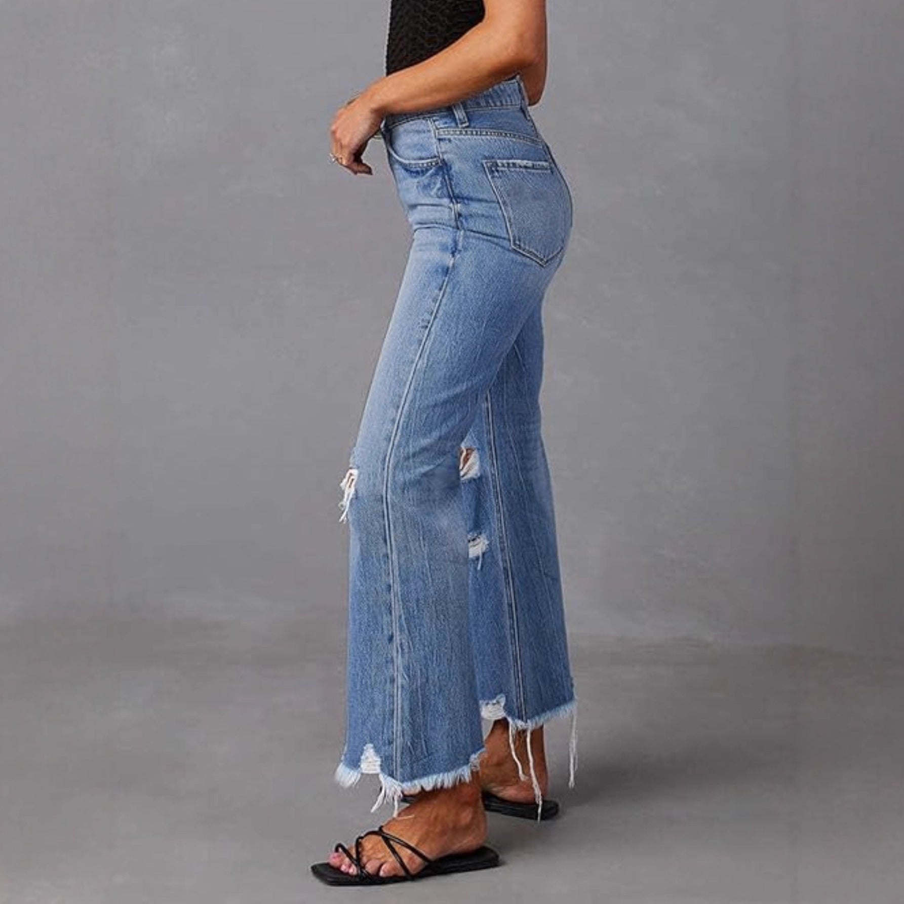 Entdecken Sie die Damen Flared Jeans mit ausgefallenem Destroyed-Effekt von Stalluxe – eine Kombination aus modernem Stil und bequemem Tragegefühl. Diese Jeans sind der perfekte Begleiter für trendbewusste Frauen, die sowohl Komfort als auch modisches Flair suchen.
