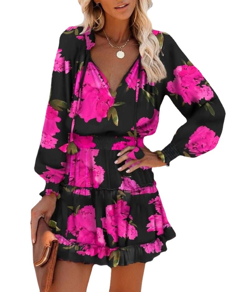Damen Freizeitkleid mit buntem Grafikdesign und Rüschendetails Stalluxe