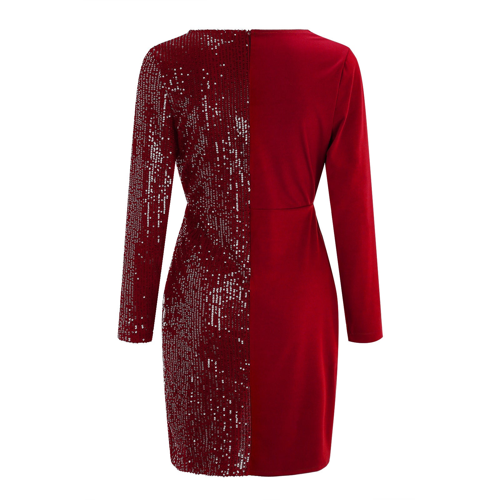 Damen Funkelndes Cocktailkleid mit asymmetrischem Schnitt und langen Ärmeln Stalluxe